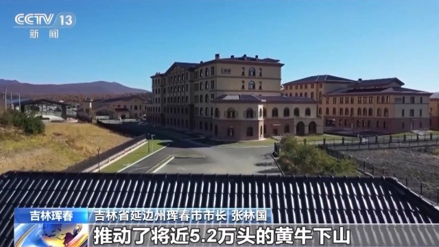 吉林省延边州珲春市市长 张林国:我们建设了三个规模比较大的黄牛养殖基地,又建设了三个牧业养殖小区,推动了将近5.2万头的黄牛下山。