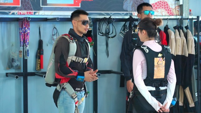 跳伞基地工作人员向游客讲解安全知识(央广网记者 索迪 摄)