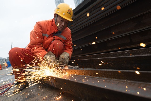 2026年1月1日,中铁十四局工人在武汉地铁10号线一期工程建设现场施工。新华社记者 肖艺九 摄