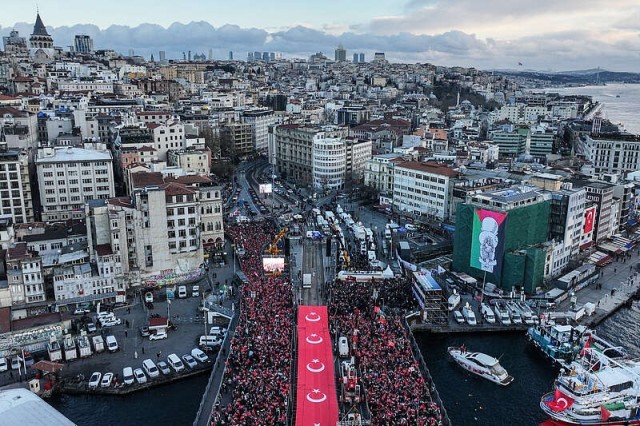 2026年1月1日,土耳其伊斯坦布尔,数千人聚集在伊斯坦布尔多地举行游行,声援巴勒斯坦人,呼吁结束巴以冲突。视觉中国供图