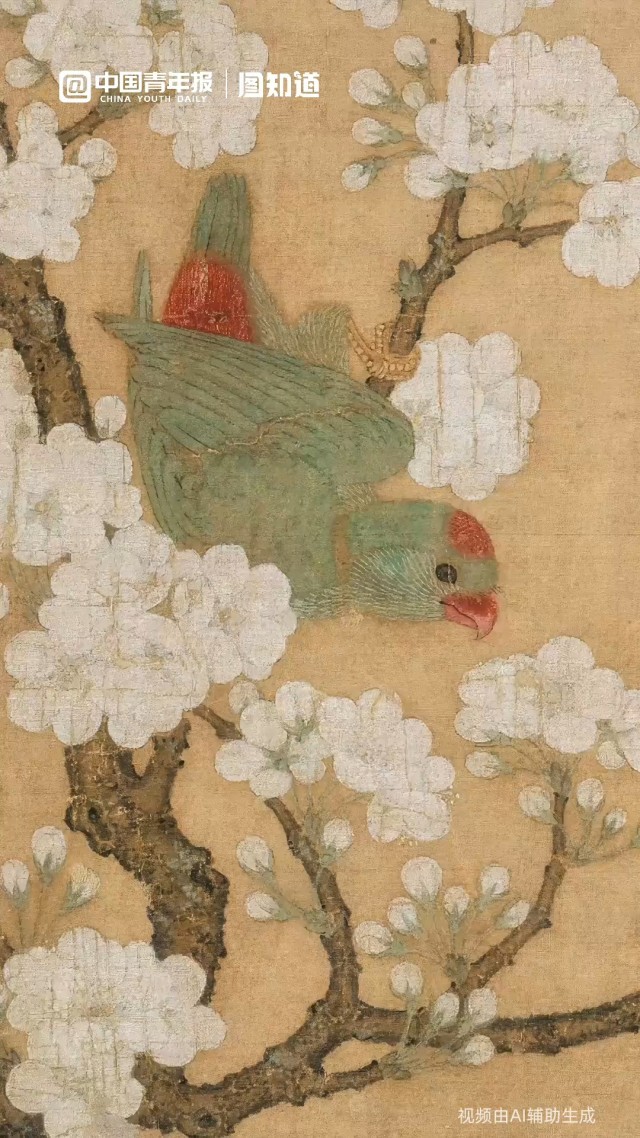 今天是1月8日,星期四,农历十一月二十。《梨花鹦鹉图》绘梨花如雪满枝,翠鹦红嘴俯身似闻花香。看花瓣晕染,鹦鹉蓬松滚圆,可爱至极。早安,朋友!(文案/朱梓轩 AI生成剪辑/张玉佳)