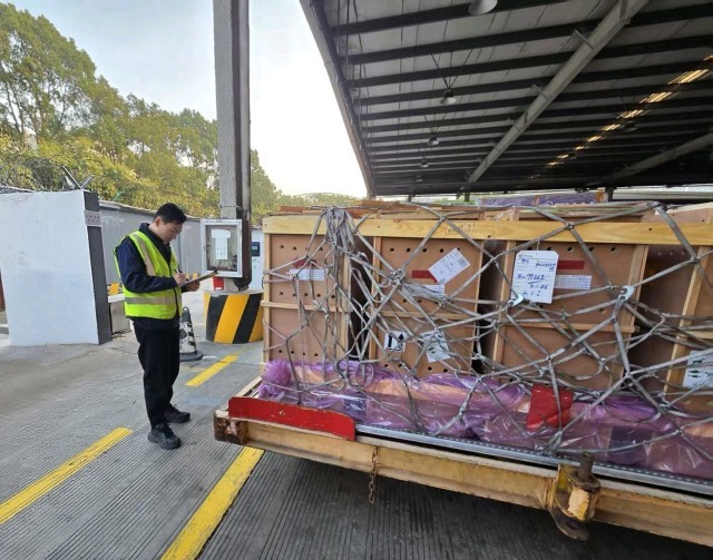 火烈鸟性情温和且胆小机警,对环境变化反应敏感,对运输环境稳定性、温湿度控制及群居适配性有着较高要求。为确保各项保障预案顺利实施,东航物流提前设置独立、安静的专属暂存区,配置了相应的防护与观察设施,最大限度模拟其适宜生存条件。与此同时,工作人员积极协助客户完成报关材料整理与提交,对关键节点进行全程影像记录,配合做好鸟只状态观察与应急准备。