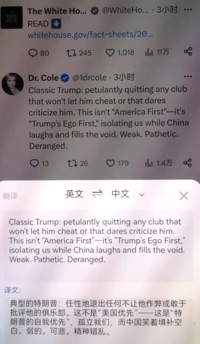 白宫通过社交媒体平台强调“美国优先”。而在评论区,许多网友对特朗普的“退群”决定表示担忧和不满。有人质疑称,“这不是‘美国优先’,而是‘特朗普的自我优先’,让我们在国际上孤立,中国会填补美国留下的空白”,特朗普的“退群”行为“软弱、可悲、精神错乱”。
