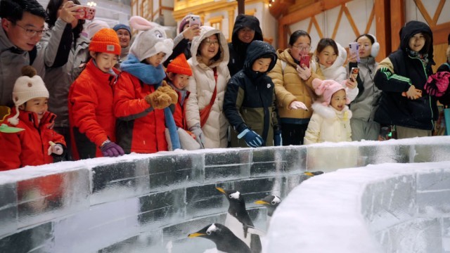 2026年1月1日,耀雪冰雪世界上演极地滑雪企鹅巡游活动。受访者供图