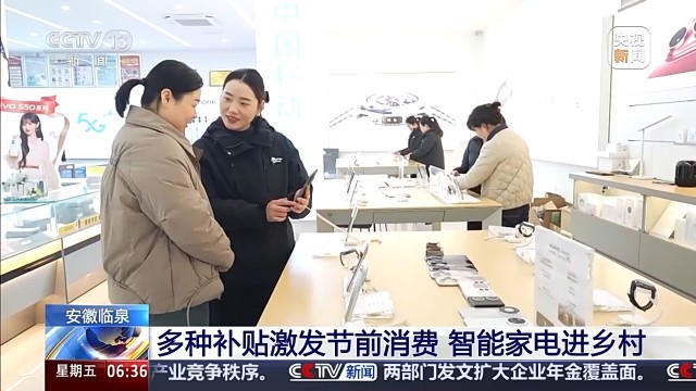 临泉县商务局党组成员 李淼:今年的节前消费呈现出明显品质化、智能化趋势,过去大家集中购买传统年货,现在各类智能化产品成为新选择。我们通过完善供应链,优化产品供给,让过去在一、二线城市流行的智能产品,能够快速适配并进入乡村家庭,激发了潜在的消费升级需求。