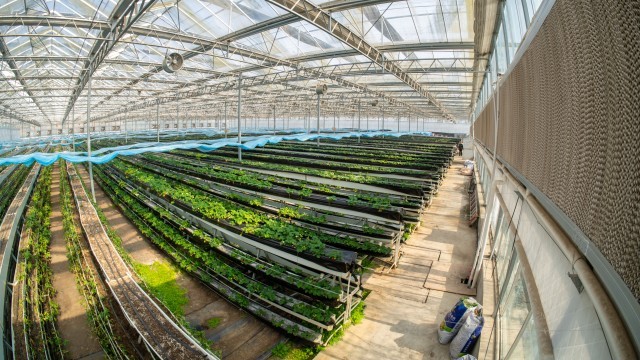 “醉美莺河”景区的温室大棚,游客可以在此摘草莓。湖北大学 林芳灏/摄