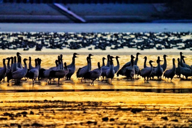 为了更好地观察这些鸟类,湿地内设有多个观鸟平台。游客还可以通过望远镜,近距离观察它们的生活习性。