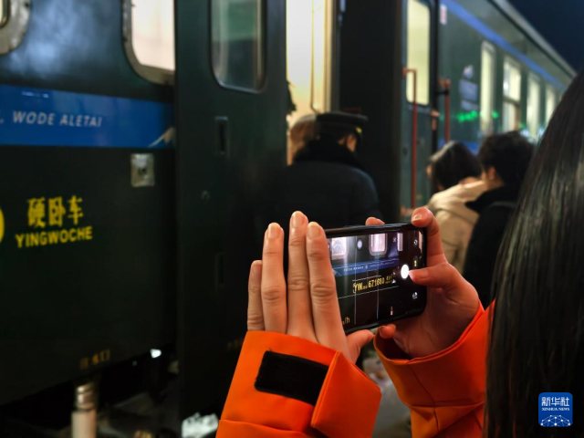 1月31日,台湾青年在阿勒泰搭乘“中国雪都·我的阿勒泰”号冰雪主题旅客列车返回乌鲁木齐。新华社记者 贺小童 摄