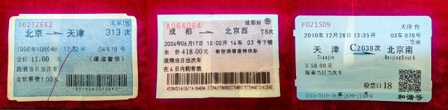 拼版照片,1996年、2004年、2010年的纸质火车票。(中国铁路太原局集团有限公司供图)
