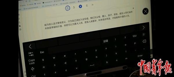1月24日,蔡磊用眼控仪写下,“能为别人活才更有意义”。中青报·中青网记者 玄增星/摄