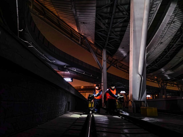 作业人员在北京南站对钢轨进行探伤。中青在线记者 陈思阳/摄