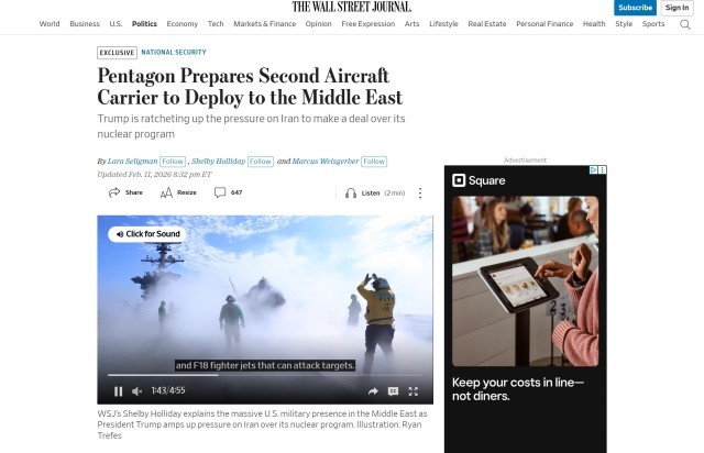 “(五角大楼的)命令可能在数小时内下达,但计划仍然存在变数。”当地时间2月11日,美国《华尔街日报》援引多位匿名官员的话说,美国海军的另一支航空母舰编队正在进行部署前准备,未来将与已经驻留在阿拉伯海的“林肯”号航母打击群汇合。