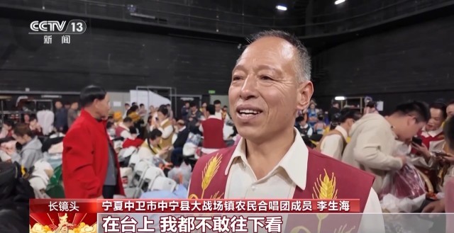 宁夏中卫市中宁县大战场镇农民合唱团成员 李生海:在台上,我都不敢往下看,种了大半辈子地,从来没想过能站在这个舞台上,到现在我这腿肚子还在“转筋”。