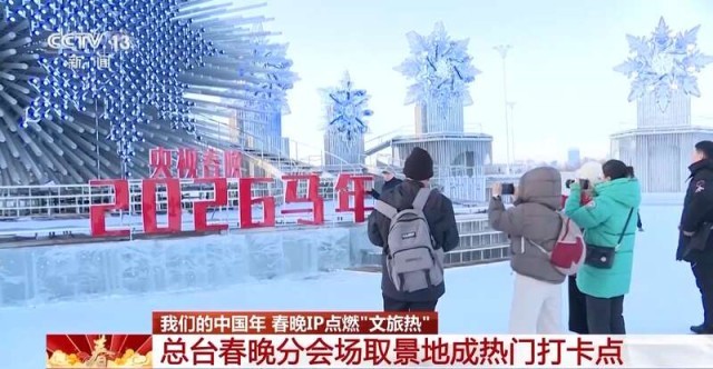在黑龙江哈尔滨,总台春晚哈尔滨分会场的主舞台春节期间向公众开放。各地游客络绎不绝,在冰天雪地中打卡拍照,留下新春记忆。