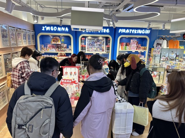 在他的店里,消费者买满一定金额可以参与抽奖,奖品是限量贴纸或热门角色的小立牌。柜台上方挂着“新年限定”的条幅,一排排徽章在灯光下闪着光。“现在竞争激烈,光有货不行,还得有氛围。”陈龙起说,即便顾客只是买一个29元的徽章,店员也会热情介绍背后的IP故事,“我们卖的不是冷冰冰的商品,是一份好心情。”