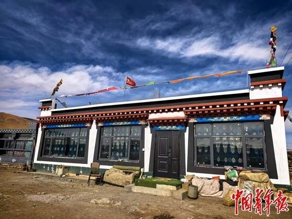 和村里其他房子一样,旦增旺姆家的新房是典型的藏式民居,二层小楼,院里有阳光房,房顶上还飘着一面五星红旗。她家墙上绘着鲜艳的藏式花纹,这是专门请画师画的。与老房子不同的是,旦增旺姆的新家有了独立的厨房和卫生间。她告诉记者,过去,村里的老房子都没有单独厨房,现在方便多了。