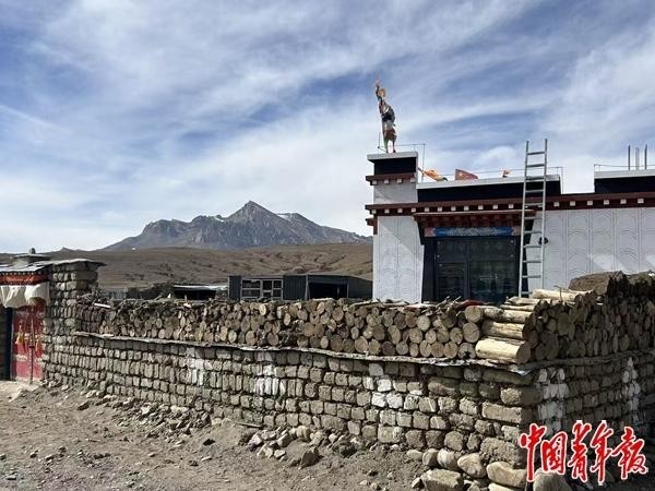 西藏自治区日喀则市定日县波村的新房,村民把从老房子拆下来的木头垛起来,做院子的围墙。中青报·中青网记者 潘圆/摄