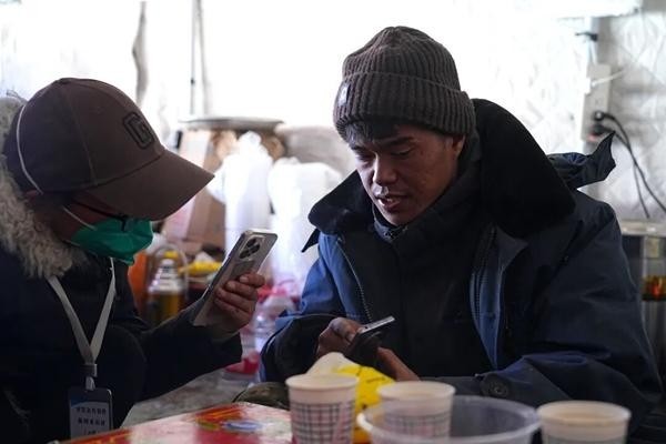 2025年1月7日,西藏自治区定日县发生6.8级地震。图为地震发生后,定日县古荣村驻村专干旦增(右)在灾区工作。受访者供图