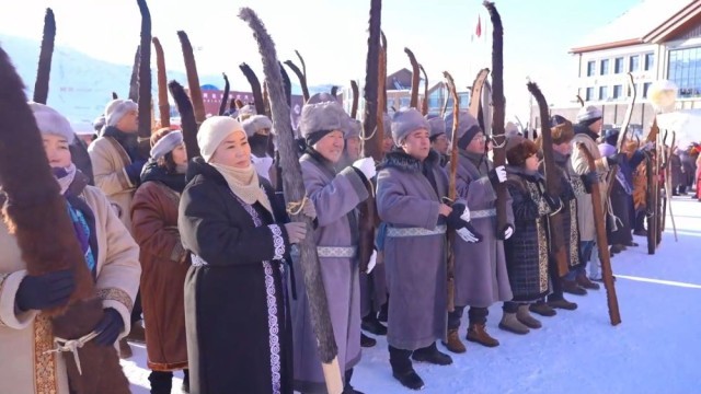 今年1月,一场古老毛皮滑雪比赛在阿勒泰将军山国际滑雪度假区举行。参赛选手脚踩毛皮滑雪板,手持实木雪杖展开激烈角逐。