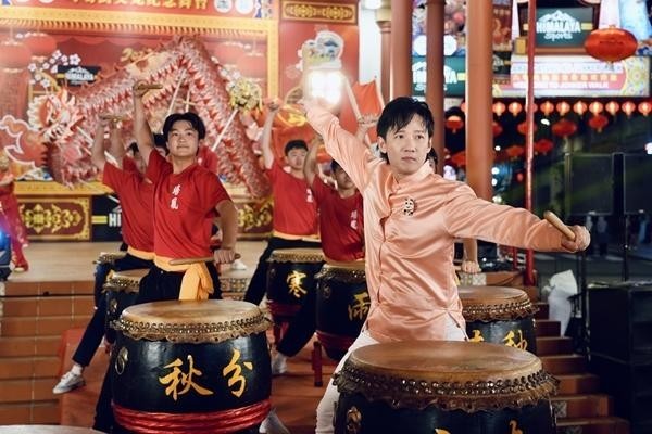 2026福建省春节联欢晚会马来西亚马六甲分会场,歌舞《桃花朵朵开》融合二十四节令鼓等表演。节目组供图