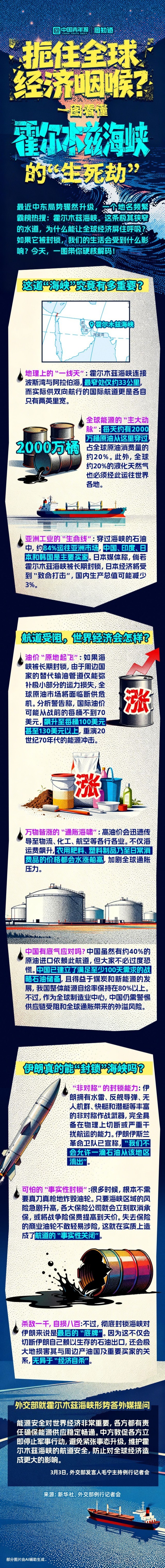 最近中东局势骤然升级,一个地名频繁霸榜热搜:霍尔木兹海峡。这条极其狭窄的水道,为什么能让全球经济屏住呼吸?如果它被封锁,我们的生活会受到什么影响?今天,一图带你硬核解码!