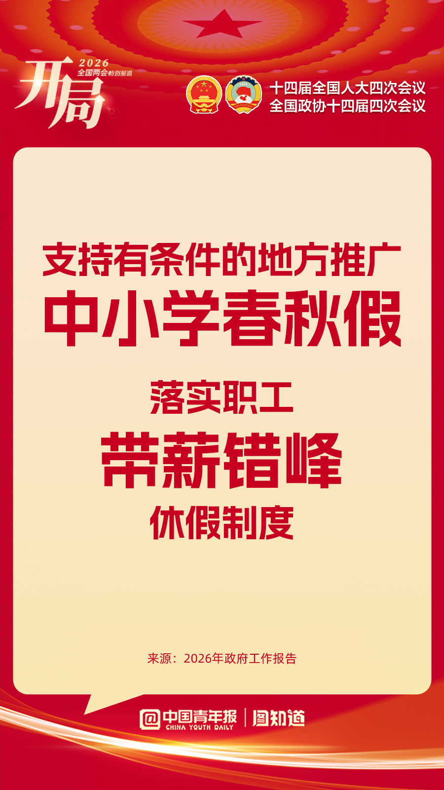 图知道|2026年政府工作报告支持中小学春秋假、职工带薪错峰假