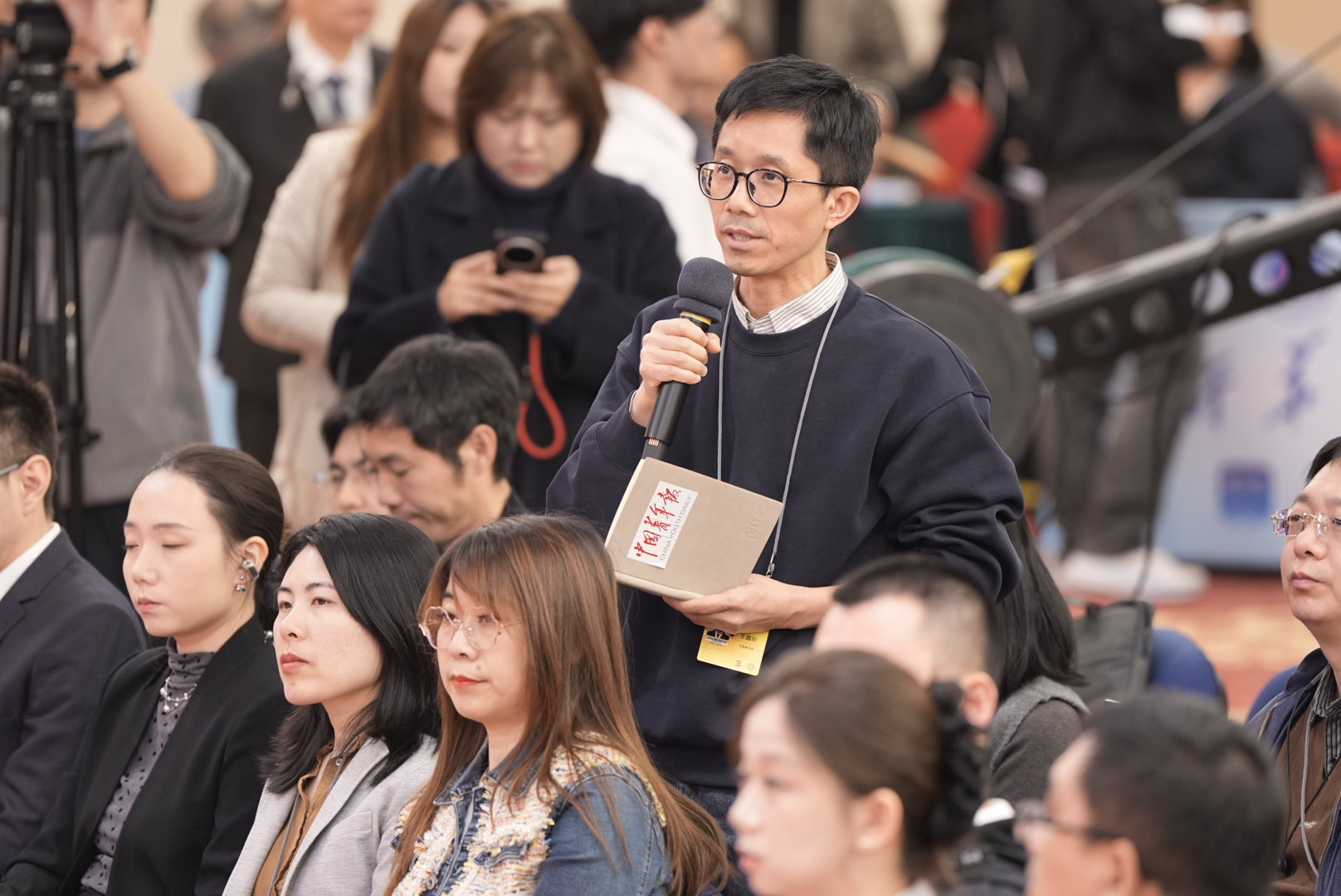 3月7日上午,十四届全国人大四次会议举行民生主题记者会,中青报·中青网记者王鑫昕向国家卫生健康委员会主任雷海潮提问。(中青报·中青网记者李隽辉/摄)