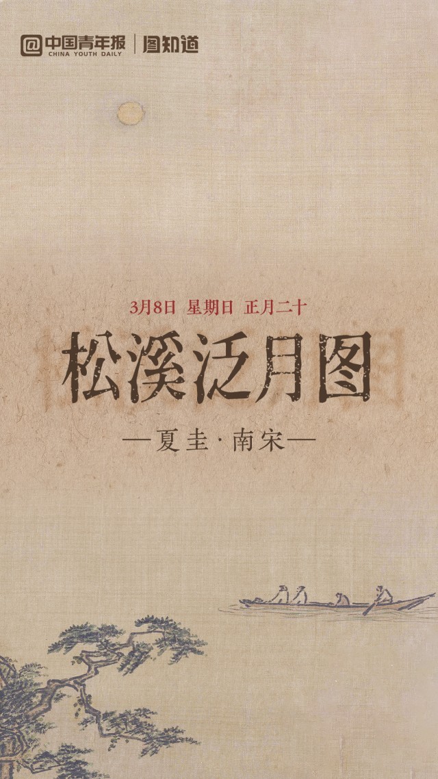 今天是3月8日,星期日,正月二十。《松溪泛月图》绘松枝掩映,皓月当空,江面如镜,扁舟独行。愿您生活澄澈,前路光明。早安,朋友!(文案/朱梓轩 AI生成、剪辑/李晗)