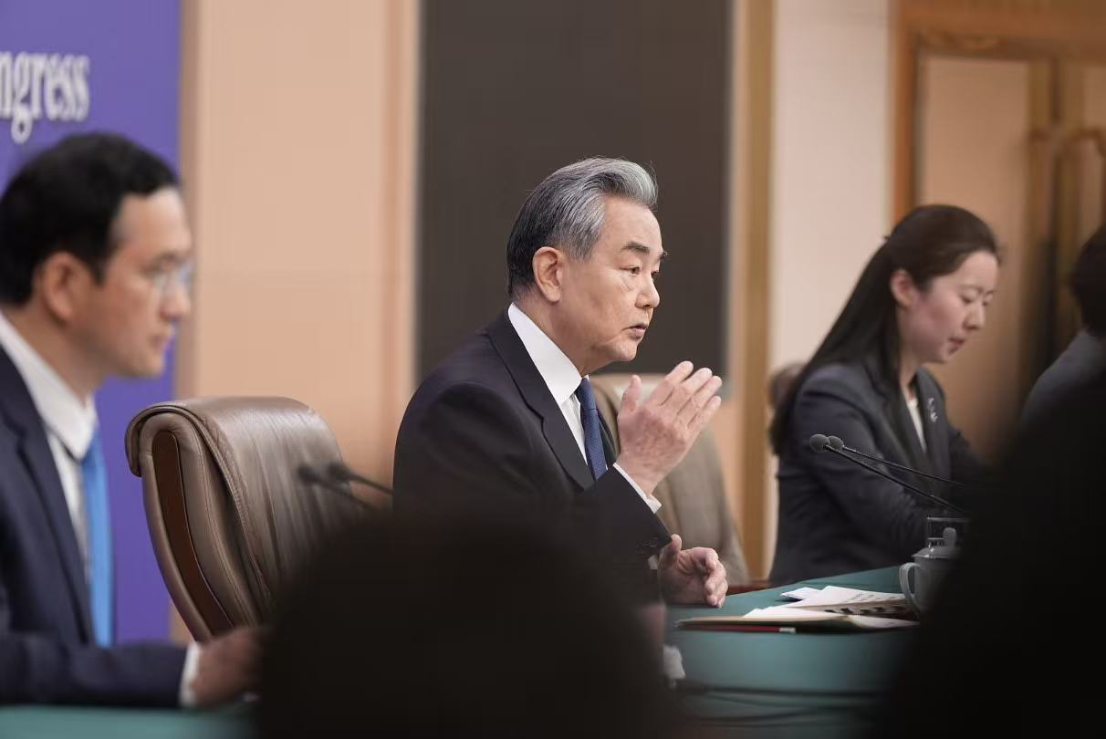3月8日,北京,十四届全国人大四次会议举行记者会,中共中央政治局委员、外交部长王毅就“中国外交政策和对外关系”相关问题回答中外记者提问。中青报·中青网记者 李隽辉/摄