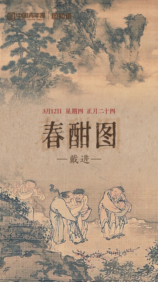 今天是3月12日,星期四,正月二十四。《春酣图》绘春日山涧水边之景。松树挺拔,山峰陡峭;路上行人匆匆;河畔舟筏停靠,舟上二人把酒言欢,一人伏案酣睡,尽显轻松惬意。早安,朋友!(文案/朱梓轩 AI生成、剪辑/董怡璇)