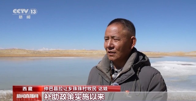 仲巴县拉让乡珠珠村牧民群众 达娃:补助政策实施以来,草场长势变好,沙化得到了有效治理。现在藏野驴等野生动物成群结队,牲畜也能吃到更好的饲草了。