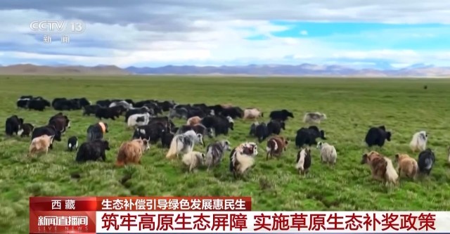 西藏是国家重要的生态安全屏障。近年来,当地通过持续深入落实生态补偿机制,实施草原生态保护补助奖励纵向补偿政策,不断推动草原增绿、牧民增收,为建设生态文明高地提供支撑。