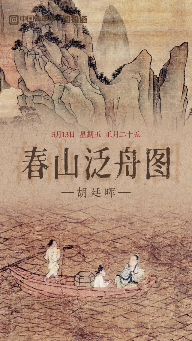 今天是3月13日,星期五,正月二十五。《春山泛舟图》绘崇山耸立,飞泉流涧,松木葱郁,屋宇精丽。山脚溪桥潭水,波光粼粼,游人泛舟赏景,好一派春和景明!早安,朋友!(文案/朱梓轩 AI生成、剪辑/董怡璇)