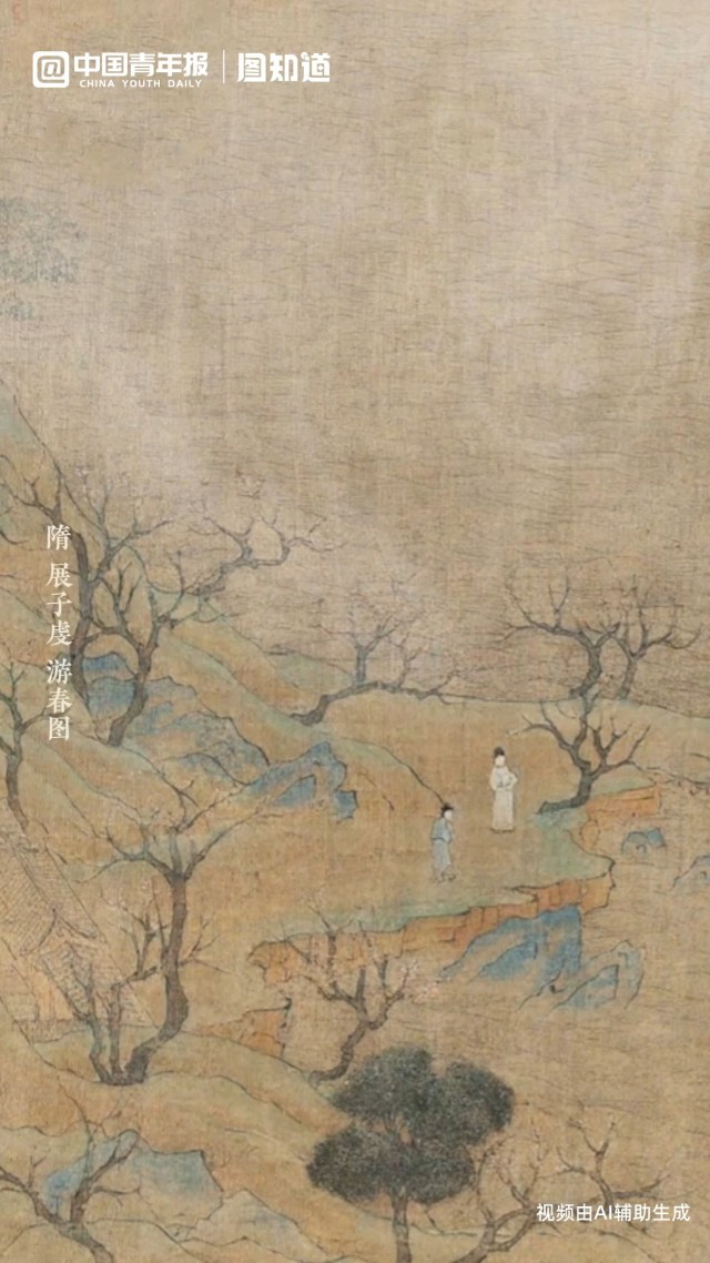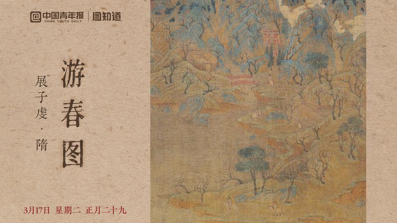 今天是3月17日,星期二,正月二十九。《游春图》绘林木葱郁,桃花点缀枝头,景色宜人,三五行人游春赏花;远处烟云飘渺,宛若仙境。早安,朋友!(文案/朱梓轩 AI生成、剪辑/董怡璇)