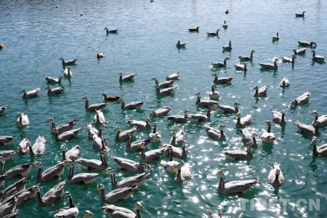 中国西藏网讯 春日暖阳下,西藏拉萨河迎来极富生机的时节。每逢冬日,拉萨河成为候鸟们眷恋的越冬家园,斑头雁与赤麻鸭用鲜艳的羽色点缀着河谷的色彩,与远山、碧水共同构成一幅灵动的生态画卷。远山含黛,碧水如镜,候鸟翩跹,构成一幅幅动人的生态画卷。镜头所至,生机盎然,画面之中,尽显高原生态环境之美。(中国西藏网 实习记者/宋俊张艺彤)
