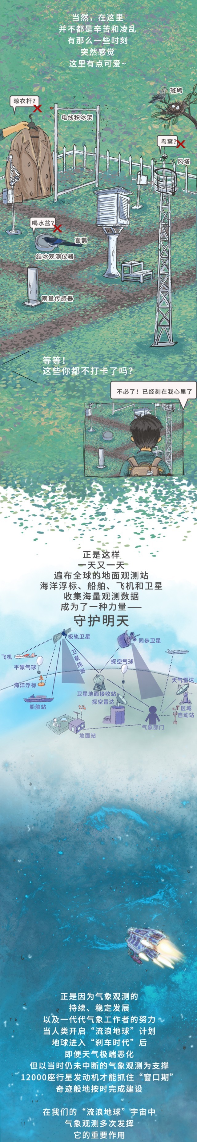 手绘长图丨在世界气象日,解锁“流浪地球”最新外传