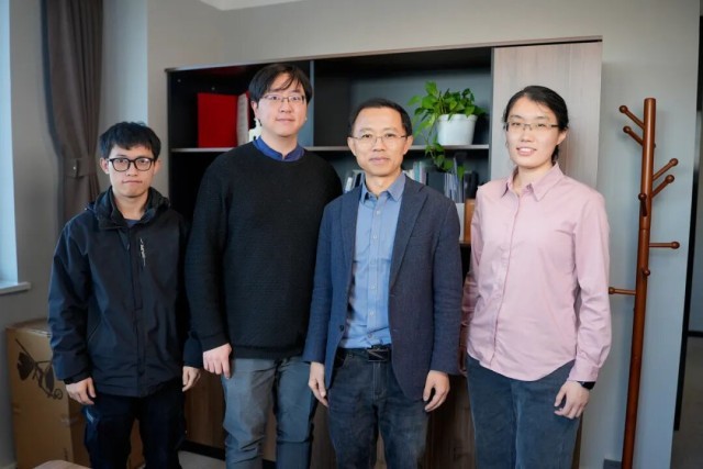 洪波(右二)和团队部分博士生合影。受访者供图