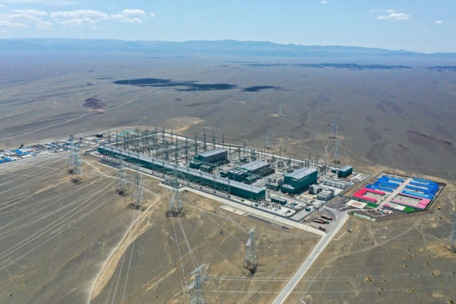 这是2025年6月10日拍摄的哈密—重庆±800千伏特高压直流输电工程新疆送端站——巴里坤换流站(无人机照片)。新华社记者丁磊 摄