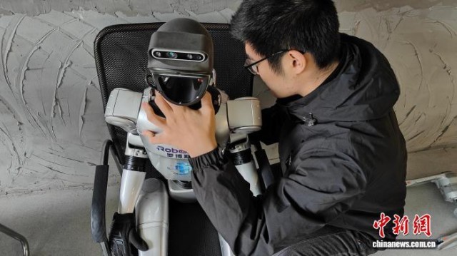 3月24日,浙江杭州,技术人员在调试机器人。 陈瑞圣 摄