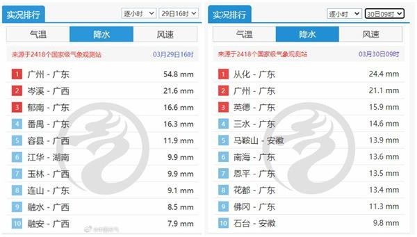 强降雨的到来,也可能让华南前汛期开启。截至3月29日,广东已有33个气象站的单日降水量在38毫米以上,如果再增加10个以上站点,就将满足华南前汛期开始的标准。