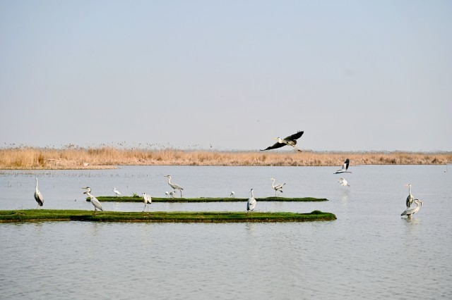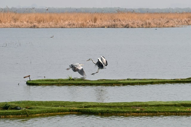 湖面上,几只青头潜鸭猛地扎进水里,片刻又冒出头来,悠然游向远方。