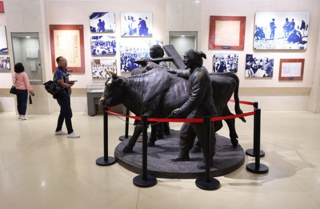 2025年10月8日,游客在河北平山县西柏坡纪念馆参观。新华社发(梁子栋摄)