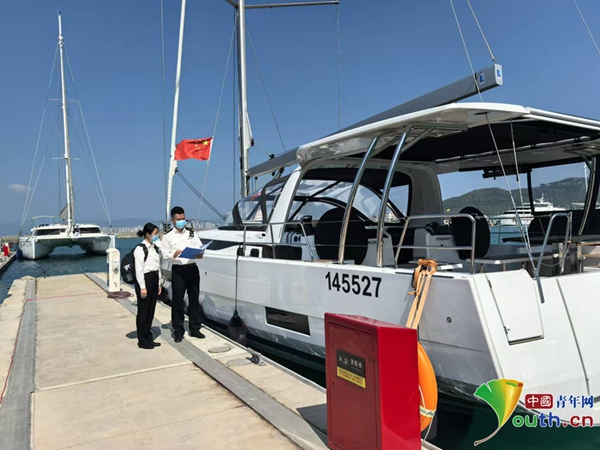 三亚海关关员在游艇码头对进境游艇开展监管。三亚海关供图