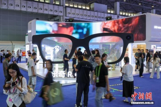 4月13日,第六届中国国际消费品博览会在海口启幕,一款巨型AI眼镜亮相消博会现场。 中新社记者 骆云飞 摄