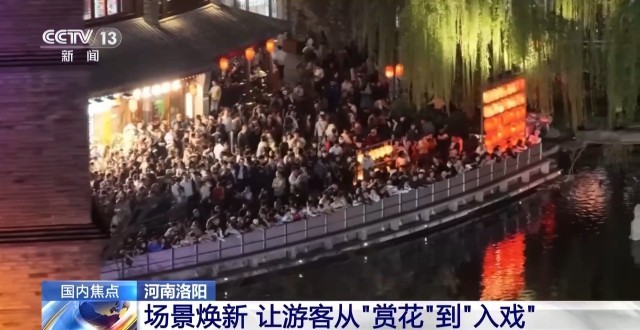 夜幕降临,夜色中的洛阳更具感染力:文旅街区内,古风巡游、实景演艺、点灯仪式轮番登场,让八方游客沉浸其中。文旅热度也从景区景点,一路蔓延至市井街巷。洛阳瞄准大众消费需求,让白天的花海诗意,延续到夜晚的美食烟火里。