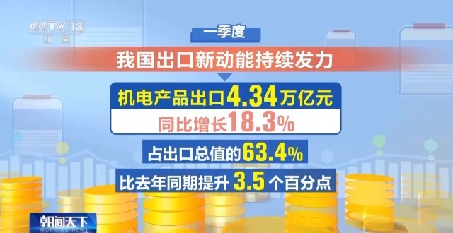 今天的《一季度经济观察》,关注外贸里的新变化。最新数据显示,今年一季度,我国货物贸易进出口11.84万亿元,同比增长15%,规模创历史同期新高。这样亮眼的外贸表现,背后有哪些动能在支撑?