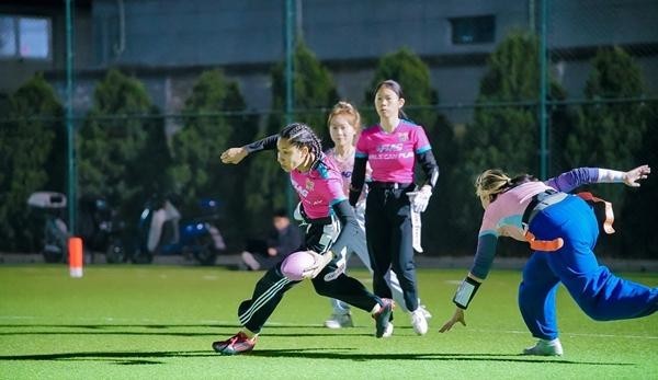 2021年,来晓雷在北大成立了美式橄榄球队。NFL(美国国家橄榄球联盟)中国赞助的几十套全套装备,让这支队伍从一开始就具备专业底色。随后学校的英式、腰旗橄榄球队相继成立,短短5年,会员已近千人,包括来自5大洲34个国家和地区的70余名留学生。