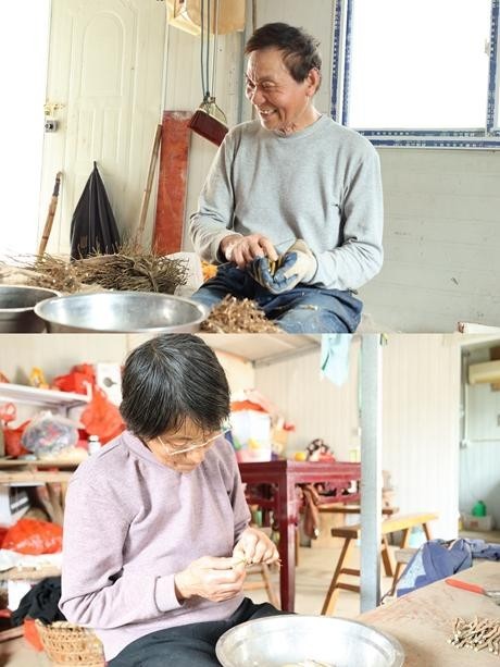 陈达生和谢新娥在嫁接小桑苗。马思洋/摄影制图