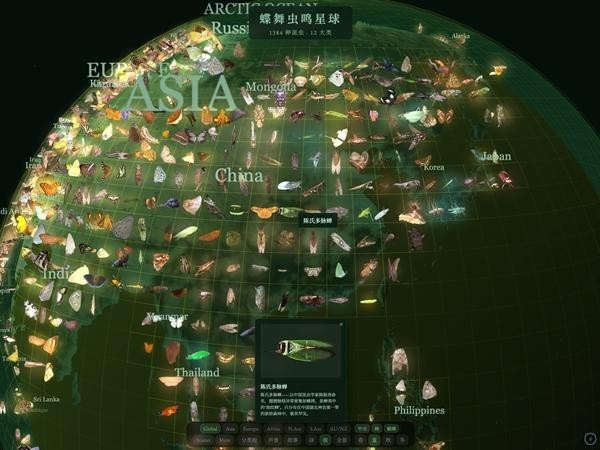 这一次到上海创业,瑞贤收集全世界的电影、蝴蝶、花卉、珊瑚信息……用地理坐标把它们标注在地图上。