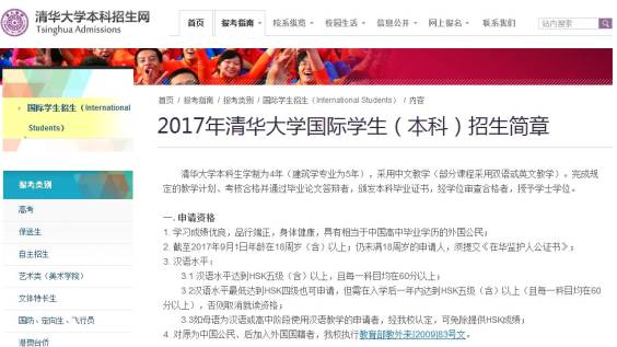 清华大学官网的国际学生招生简章